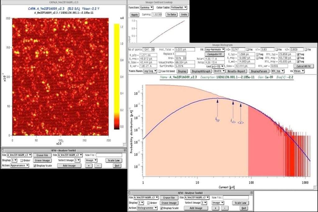 Traitement et analyses statistiques d'imagerie de conductivité réalisées par microscope à force atomique.